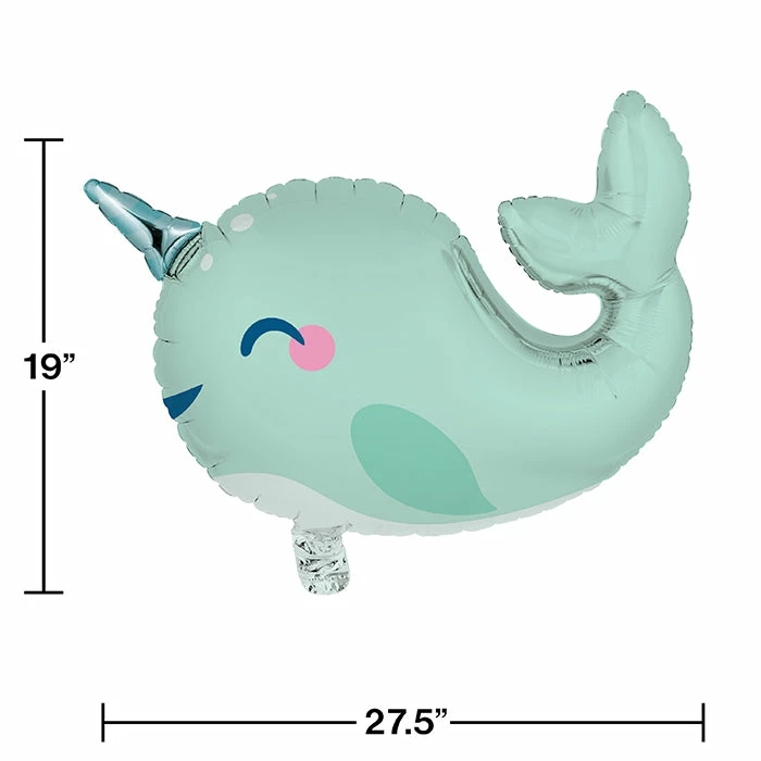 Details: Add a festive touch to your narwhal-themed party with our Narwhal Party Shaped Mylar Balloon. The shaped balloon features an adorable smiling narwhal in a pretty soft blue. The balloon measures 27.5″ x 19″ and is perfect for adding a bit of decoration to the cake or gift table. Sold one per package, complete the look with our other Narwhal Party supplies. Our Narwhal Party Shaped Mylar Balloonsare perfect for event planners, caterers, and home hostesses alike.