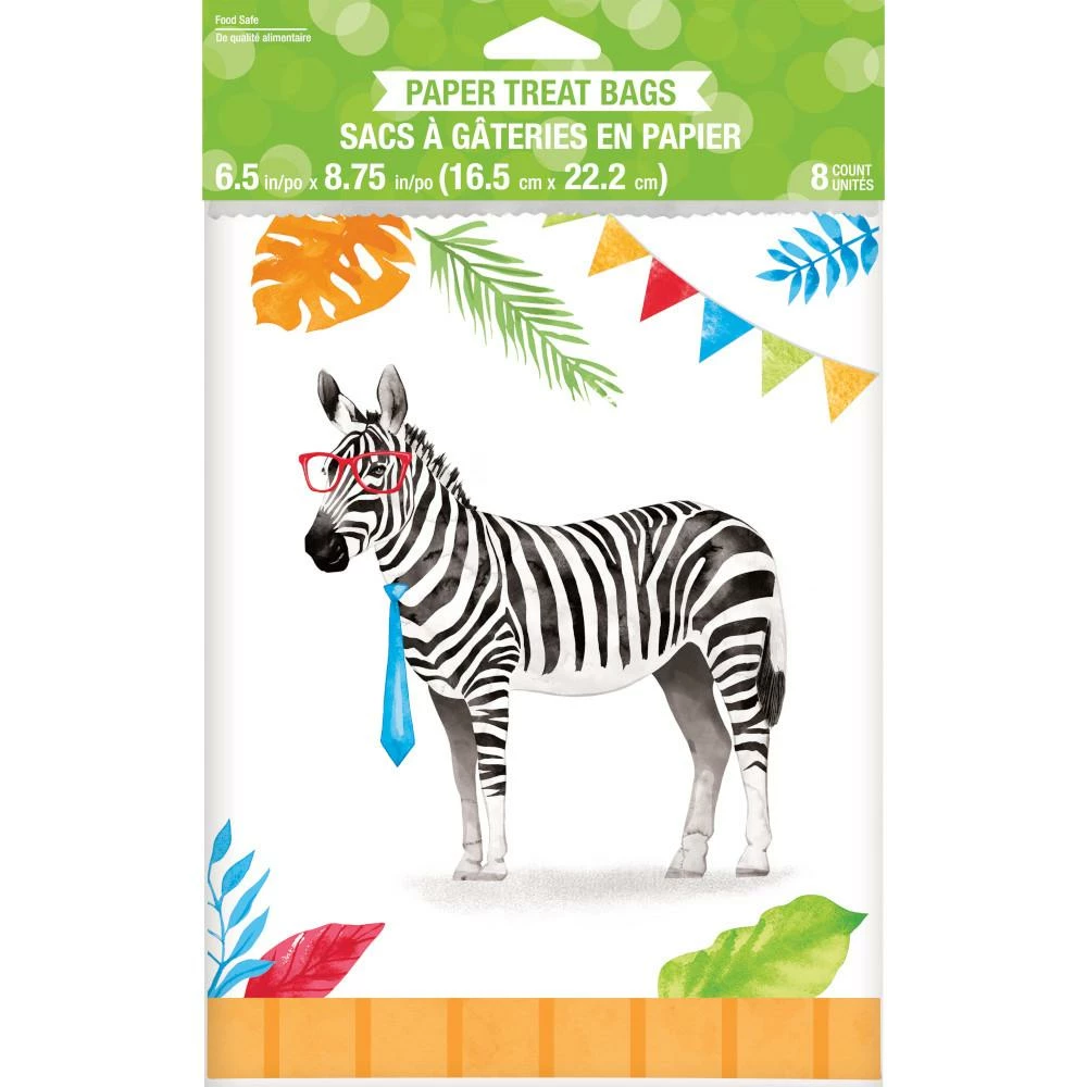 Details: Share treats with your party animals with help from our Party Animals Paper Treat Bags. These bags measure 8.75″ x 6.5″, a perfect size for small toys and candy. The bags feature party-ready animals: monkeys, leopards, giraffes, zebras, and elephants. Our Party Animals Paper Treat Bags are sold 8 bags per package. Check out the other items in our Party Animals collection and start planning your celebration! Our Party Animals Paper Treat Bags are perfect for event planners, caterers, and home hostesses alike.