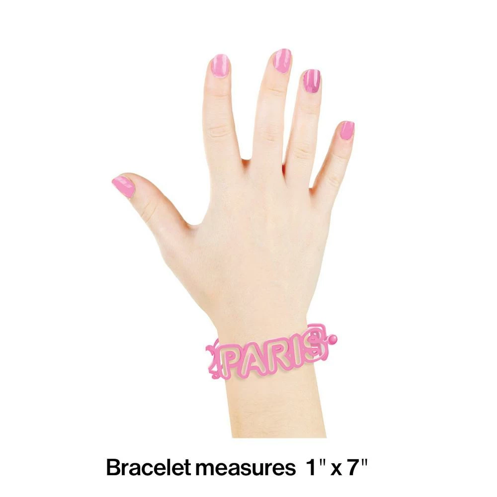 Wrap up the party with a special surprise by treating your guests with the Paris Party Favor Bracelet. The beautiful bracelets are featured in hot pink, light pink, and black with a “Party Paris” caption outline. The party favors are perfect for favor bags, goodie bags, and gifts for your guests. With wholesale pricing and bulk quantities, our Paris Party Favor Bracelets 48 ct are perfect for event planners, caterers, and home hostessses alike.