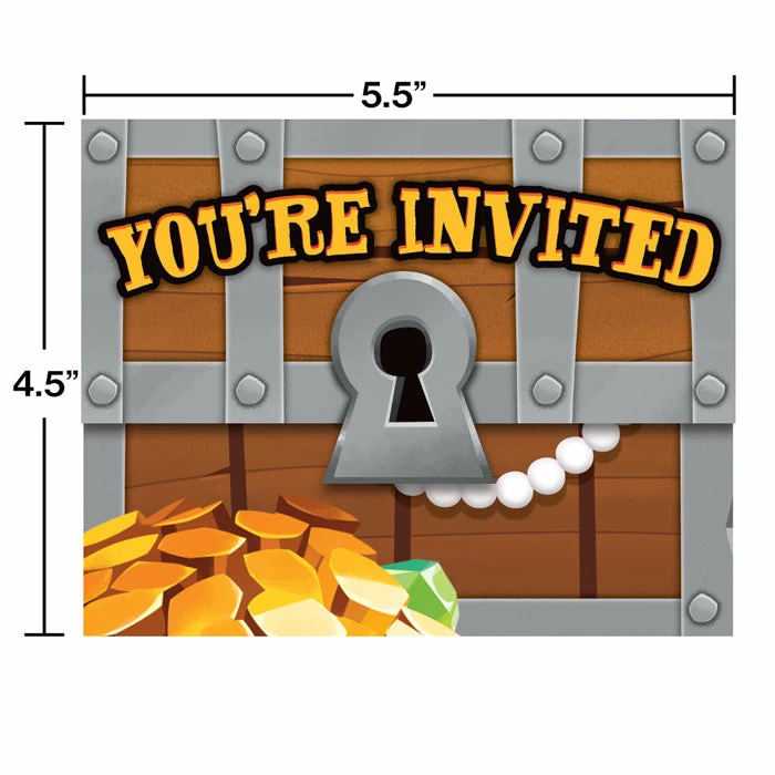 Pirate Treasure Gatefold Invitations (48/Case) – You get 8 per package and 6 packages in each case for a total count of 48/case! Shop and save on on more Pirate Treasure Party Theme at PartyDecorations.com!