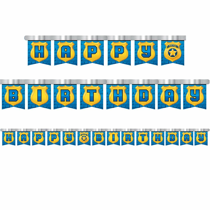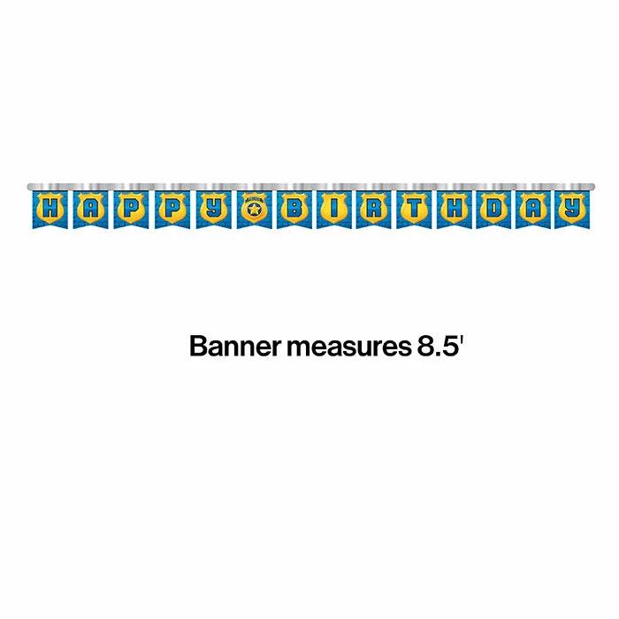 Details: Cop the Police Party Banner for your next law enforcement occasion or birthday bash. With a “Happy Birthday” message, this banner is perfect for adding a pop of fun to any party room! With discount pricing, our Police Party Party Banners are perfect for event planners, caterers, and home hostesses alike. You get one Police Party Jointed Banner Lg for this price. Approximate Dimensions: 102 in x 7 in
