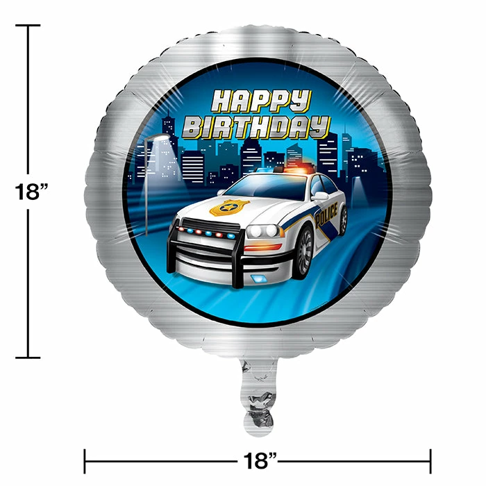 Details: This stylish Police Party Birthday Balloon features a cool emergency vehicle with flashing lights. Create the ultimate balloon bouquet with a bright bunch of our latex balloons and this fantastic Police Party Balloon in the center. Tie up your bouquet with some curling ribbon for the perfect finishing touch! With discount pricing, our Police Party Mylar Balloons are perfect for event planners, caterers, and home hostesses alike. You get one Police Party Metallic Balloon 18″ for this price. Approximate Dimensions: 18 in