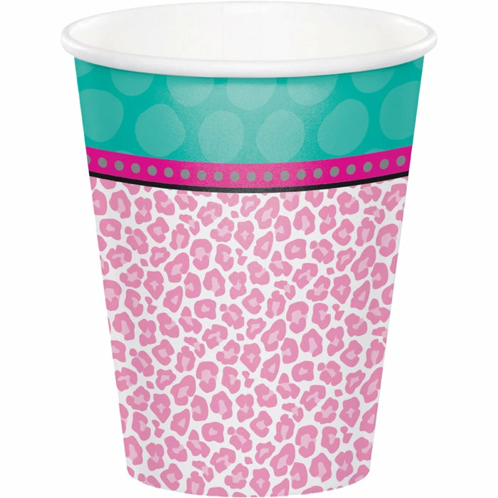 Details: Keep your spa guests refreshed with hot or cold drinks in the Sparkle Spa Party Cups. These 9 oz. cups feature a pattern of pink leopard spots with a blue border on top and are made of sturdy paper. The cups complement other party supplies from the Sparkle Spa Party collection. With discount pricing, our Sparkle Spa Party Cups are perfect for event planners, caterers, and home hostesses alike. For this price, you get one package containing (8) Sparkle Spa Party! Hot/Cold Paper Paper Cups 9 Oz. Approximate Dimensions: 3.75 in