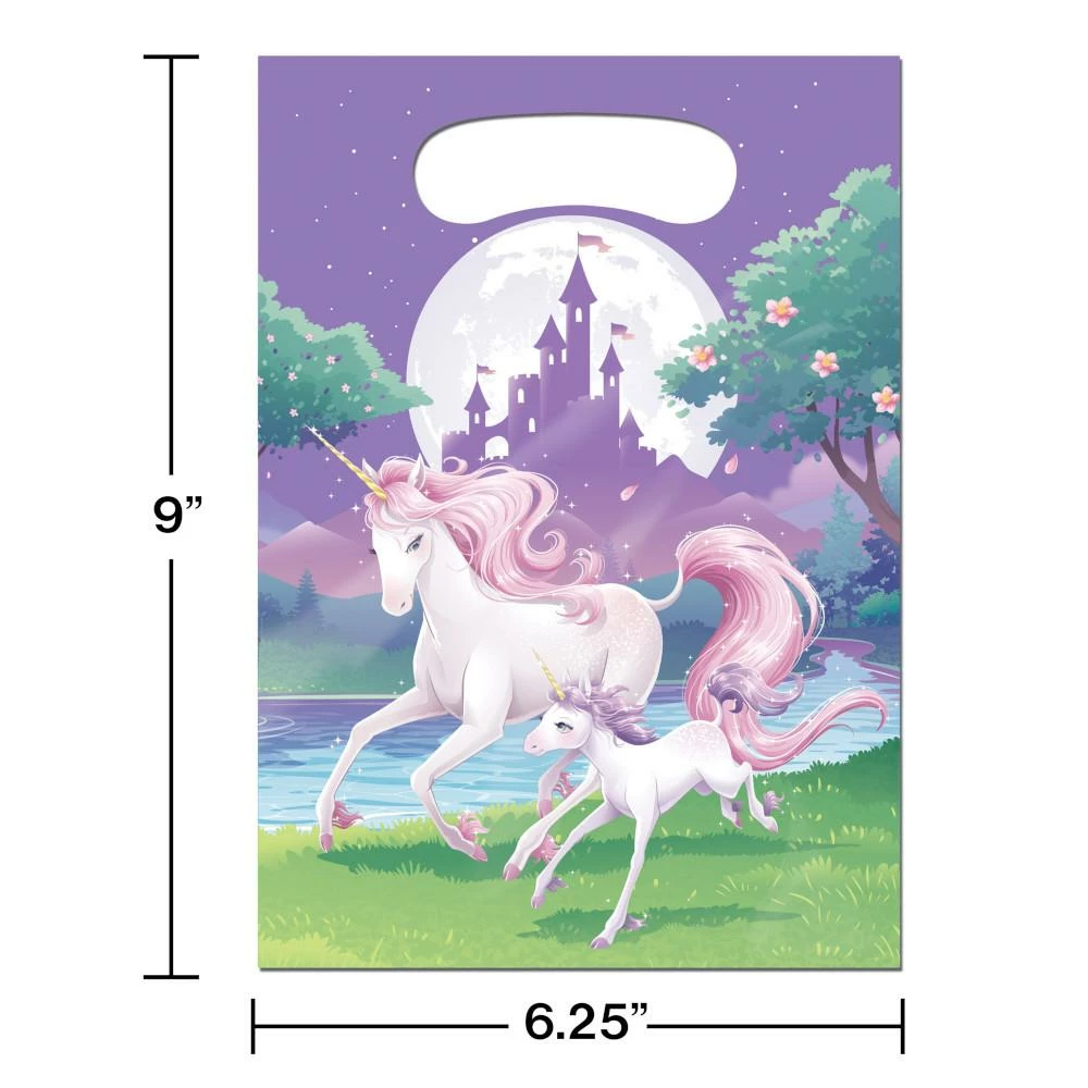 Use this (96ct) Unicorn Fantasy Loot Bags, Plastic item along with our other Unicorn Fantasy themed party supplies and decorations to create a fun birthday party celebration! You get 8 per package and 12 packages per case. Total Case count = 96. Dimensions are 6.5 inch wide by 9 inch tall.