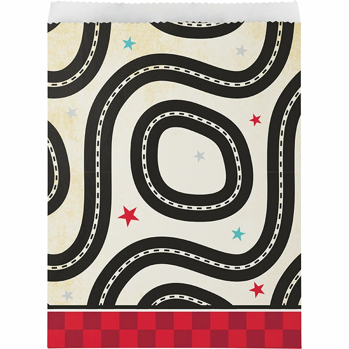 Thank your guests for attending your vintage race car party with help from our Vintage Race Car Paper Treat Bags. The bags feature a winding road design to complement the race car theme. The bags measure 6.5″ x 8.75″, perfect for holding candy and small toys. Sold 96 per package, complete the look with our other Vintage Race Car party supplies. With wholesale pricing and bulk quantities, our Vintage Race Car Paper Treat Bags 96 ct are perfect for event planners, caterers, and home hostesses alike.