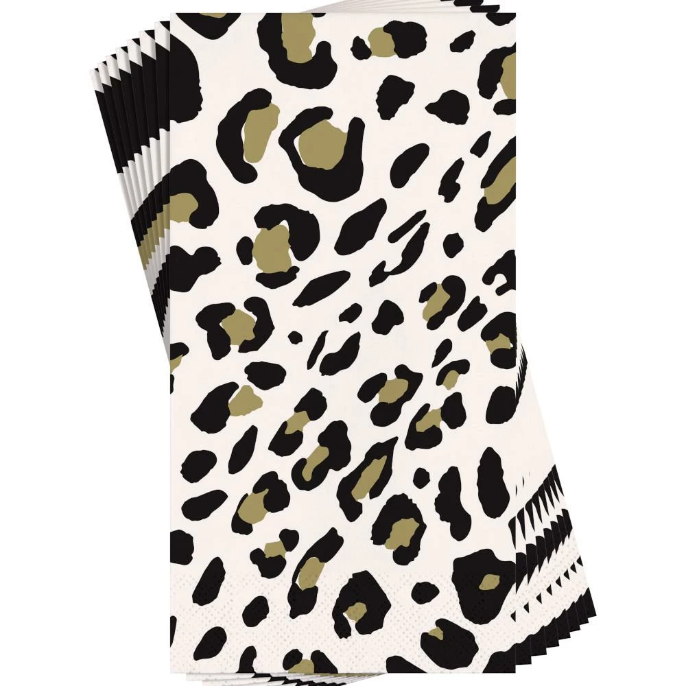 Details: Add a touch of elegance to your dinner party when you serve your meal with the Leopard Dinner Napkins. These 2-ply napkins measure 4″ x 8″ and feature a leopard print pattern with a white, black, and gold theme. Sold in packs of 16, these disposable paper napkins coordinate with all Leopard party supplies. Our Leopard Dinner Napkins are perfect for event planners, caterers, and home hostesses alike.