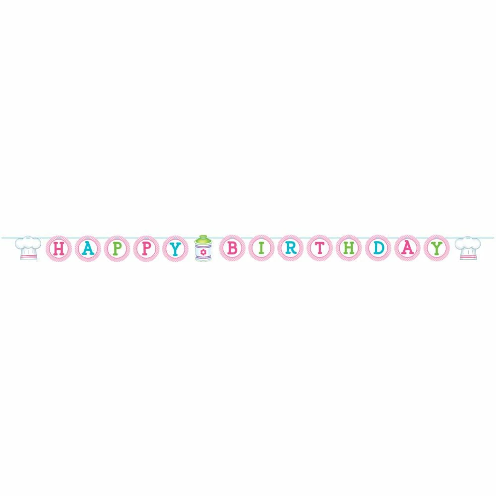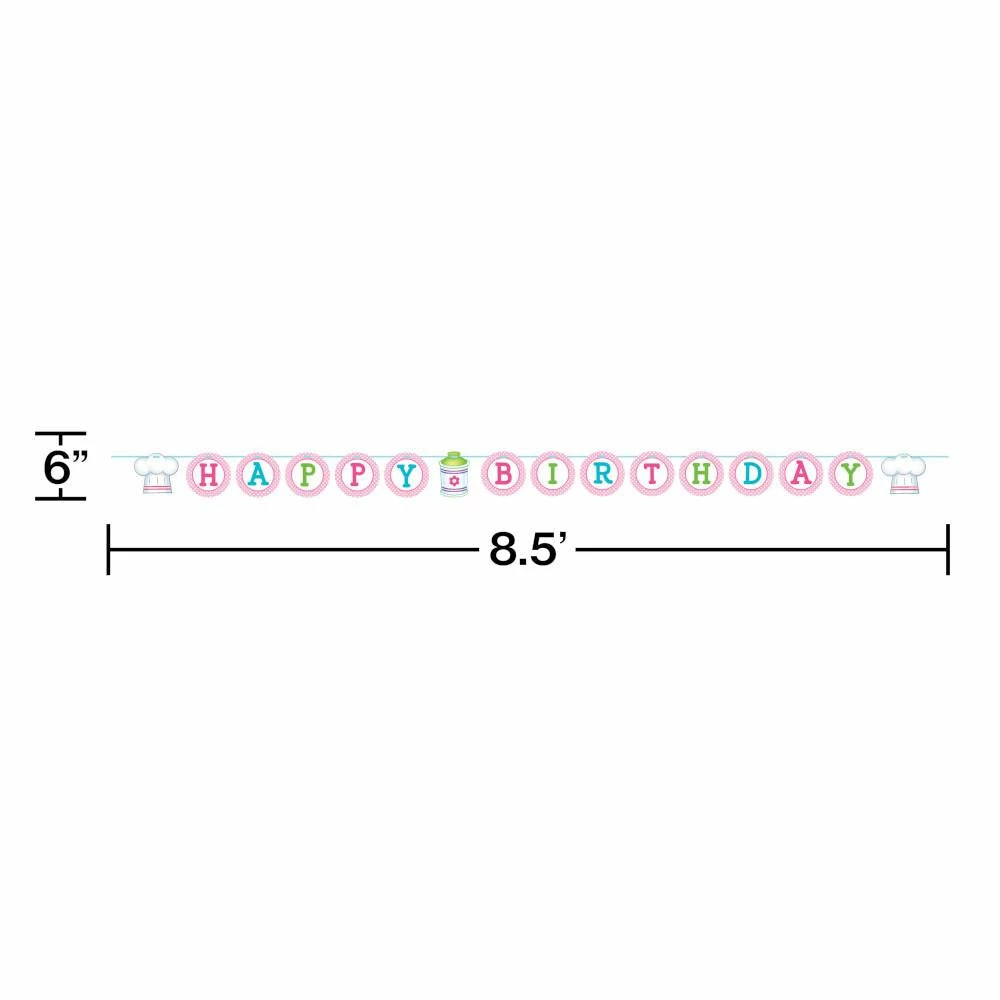 The Little Chef Ribbon Banner is the perfect recipe for an awesome birthday celebration. This 8.5′ long hanging decoration displays colorful letters that spell out ”appy Birthday” along with chef hats. The banner is sure to be a hit at kid’s birthday parties. With wholesale pricing and bulk quantities, our Little Chef Ribbon Banners 6 ct are perfect for event planners, caterers, and home hostesses alike.