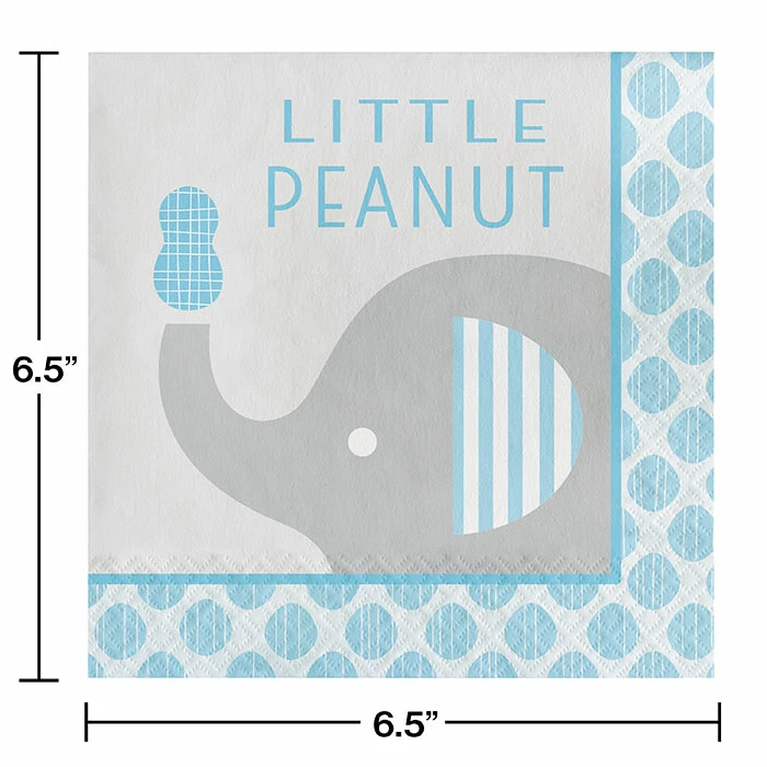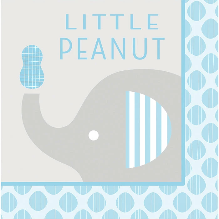 Details: These paper napkins are an absolutely elegant choice of tableware for every boy’s baby shower party. While being worry-free from spills and spots, your guests and customers will enjoy the cute design of each of these disposable luncheon napkins. Also being used as a quick solution to hold snacks, candies, or small-size finger foods, quality napkins are a not-to-be-missed tableware supply for business owners looking for wholesale elephant baby shower party supplies, decorations, and tableware. Each of these baby shower napkins reads “Little Peanut” above designs of an elephant and a peanut against a gray background with a blue polka-dot borderline. For this price, you get one package containing (16) “Little Peanut” Boy Elephant Napkins. Approximate Dimensions: 6.4 in x 6.4 in