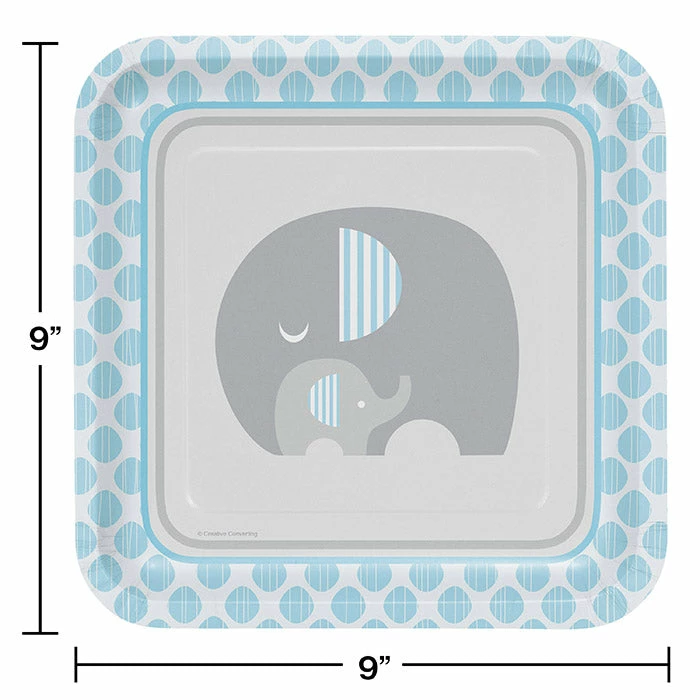 Details: Serve dinner in style with our high quality, beautifully designed wholesale dinner plates that are perfect for baby shower parties when expecting a boy. These disposable dinner plates are a great party supply to be included in your baby shower party supplies and decorations for boys. Your guests and customers will be impressed not only by the beautiful design but also the premium quality of these beautiful disposable plates. For this price, you get one package containing (8) Little Peanut Boy Elephant Paper Plates. Approximate Dimensions: 9.125 in x 9.125 in