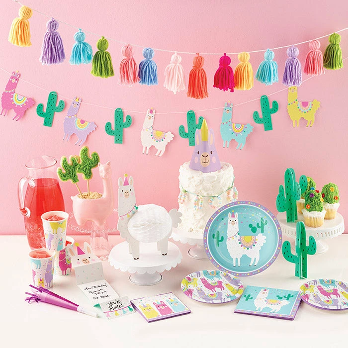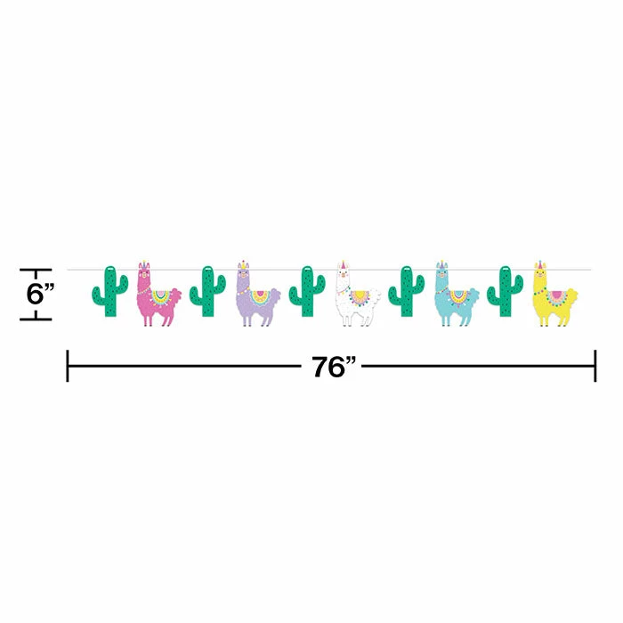 Details: Your llama fiesta decorations will be a “llama fun” with help from our Llama Party Banner. This banner measures 6″ x 4′ assembled and features alternating cacti and colorful llamas on twine. Hang above the cake or gift table and pair with our other llama party supplies for a festive fiesta. Grab this adorable Llama Party Banner today! With discount pricing and great quality our Llama Party Banners are perfect for event planners caterers and home hostesses alike. Approximate Size: 6″ x 4′. Material: Paper