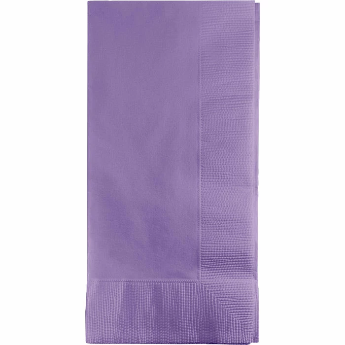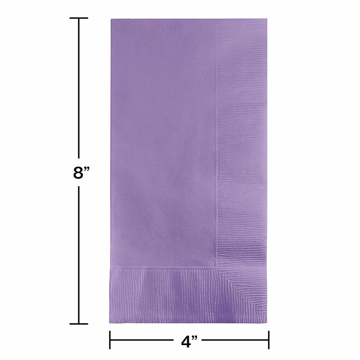 Details: Make the tables look stylish at your celebration or catered event with the Luscious Lavender Dinner Napkins. Each folded paper napkin measures 4 inches x 8 and every package contains 50 napkins. Lay this 2-ply napkin next to place settings for a more formal appearance or fan out a group of napkins next to the start of a buffet table or dessert display. The lavender color is perfect for weddings, graduations or receptions. The Luscious Lavender Dinner Napkins are sold For this price, you get one package containing (50) Luscious Lavender Dinner Napkins 2Ply 1/8 Fold. Approximate Dimensions: 8 in x 4 in