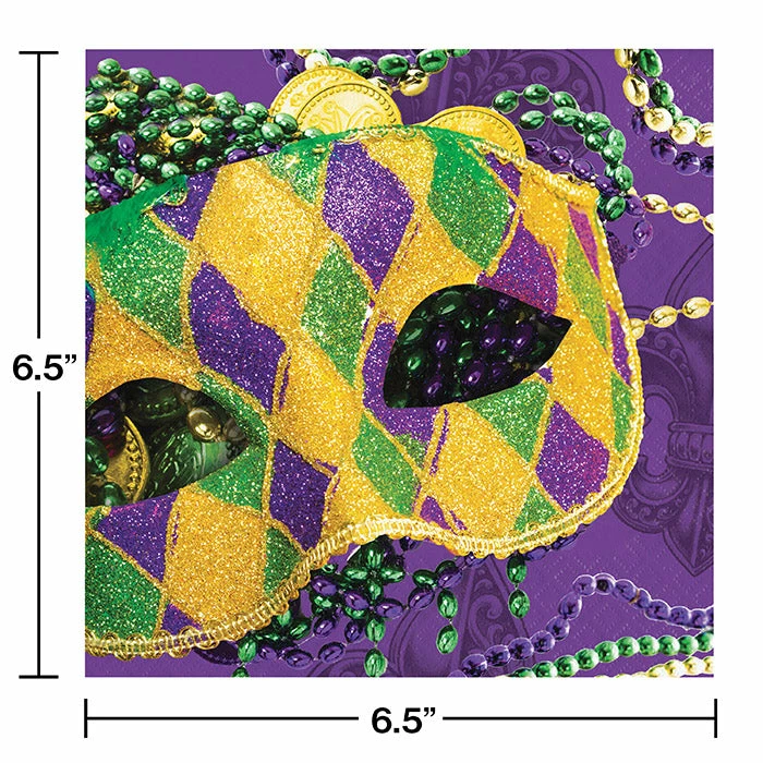 Details: Bring the vibrancy of New Orleans to your next party when you use the Masks of Mardi Gras Napkins. These 2-ply paper napkins measure 6.5″ and feature a Mardi Gras mask covered in beads and jewels. These disposable paper napkins coordinate with all Masks of Mardi Gras party supplies. With discount pricing, our Masks of Mardi Gras Luncheon Napkins are perfect for event planners, caterers, and home hostesses alike. For this price, you get one package containing (16) Masks Of Mardi Gras Napkins. Approximate Dimensions: 6.4 in x 6.4 in
