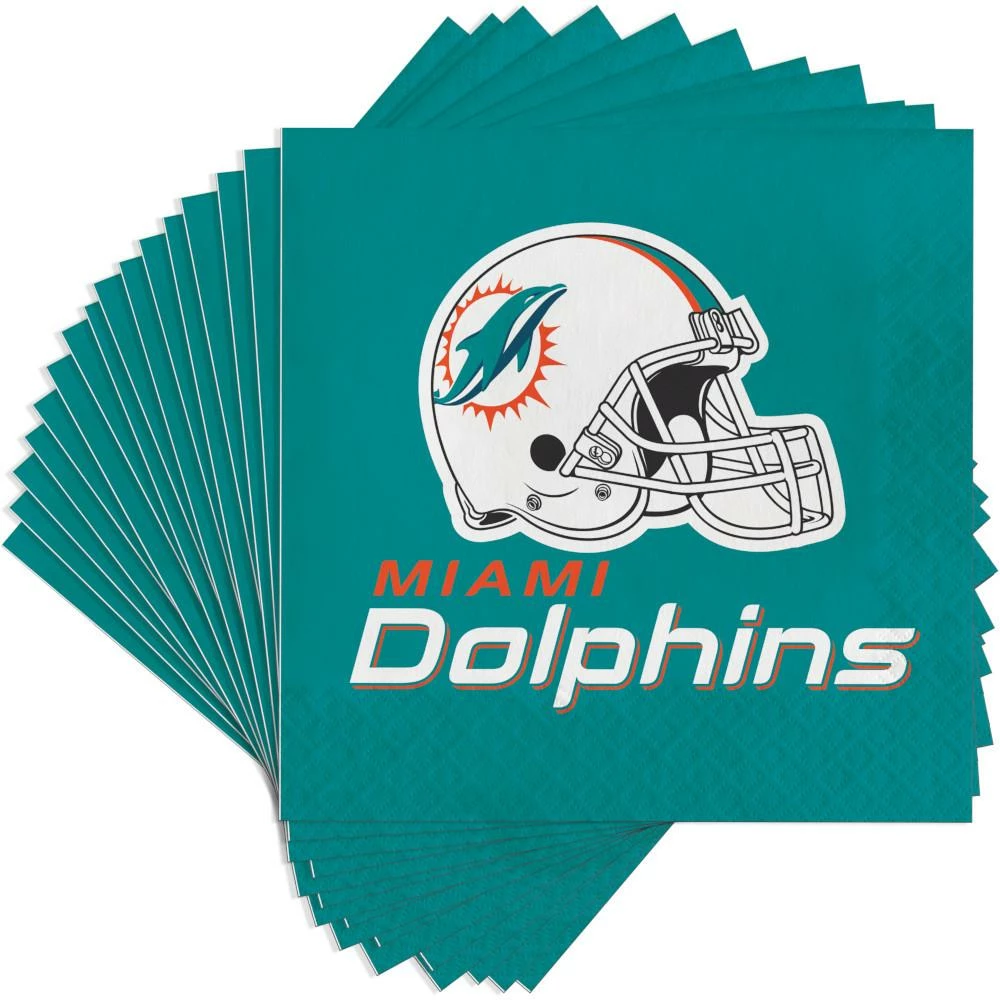 Details: Football is back! It’s time to break out the NFL gear and party supplies starting with our wholesale Miami Dolphins Luncheon Napkins. Our Dolphins napkins are made for fast cleanup and match our bulk collection of Miami Dolphins party supplies. Featuring the Miami logo and team colors, these luncheon napkins are the perfect addition to any football viewing party or tailgate. Shoppers will be the ultimate hosts with our wholesale NFL napkins.