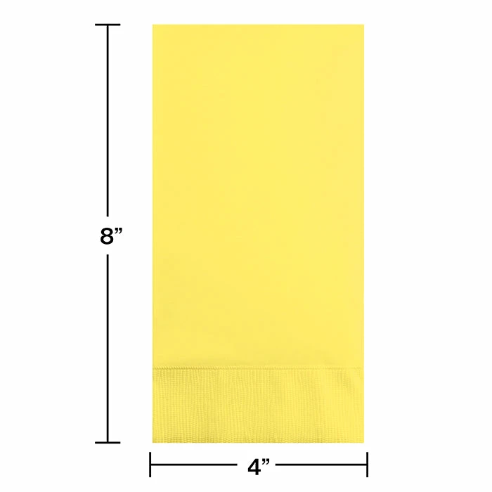 Details: Create a more formal appearance at catered events with the Mimosa Guest Towels. The napkins are sold in packages of 16 and each napkin measures 4.375 inches x 8 inches. These thicker and more durable 3-ply napkins will be perfect for any wedding reception or graduation celebration and they can even be displayed in powder rooms for easy clean up. The mimosa color easily coordinates with themed ensembles or with other solid colors for a bright display. Guests will appreciate using the higher quality product. The Mimosa Guest Towels are sold For this price, you get one package containing (16) Mimosa Guest Towel, 3 Ply. Approximate Dimensions: 8 in x 4.4 in