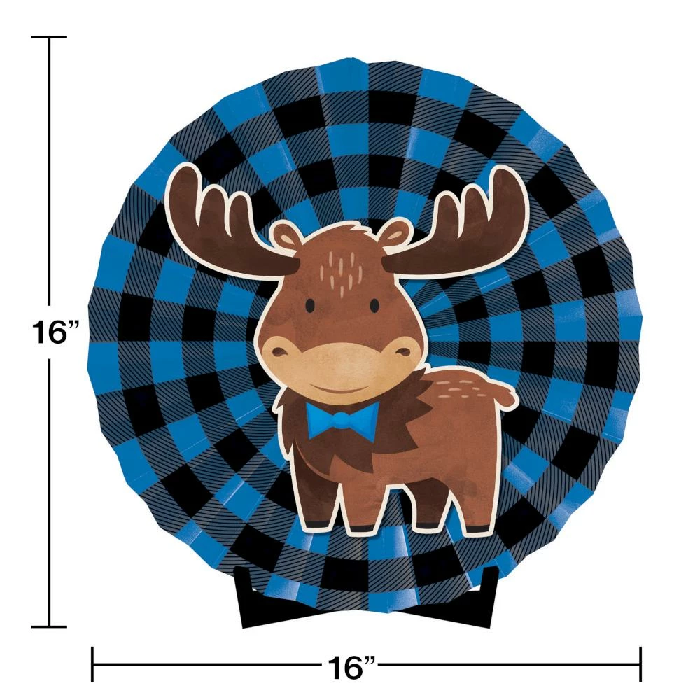 - 1 Blue Buffalo Plaid Moose Paper Fan Centerpiece