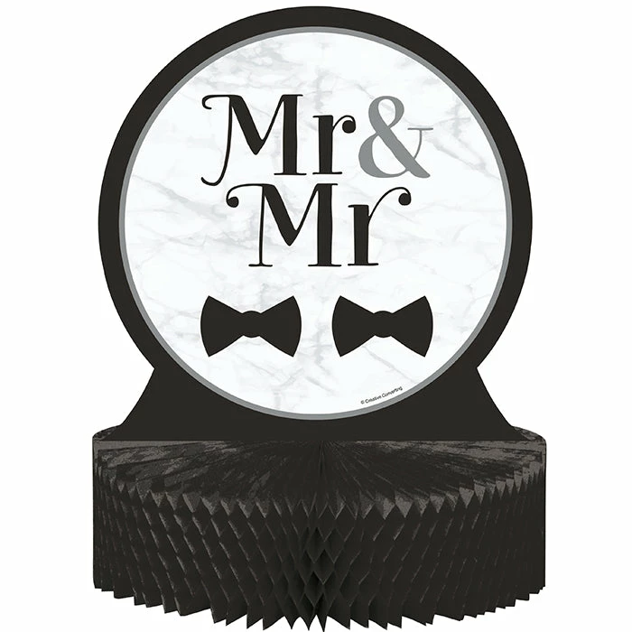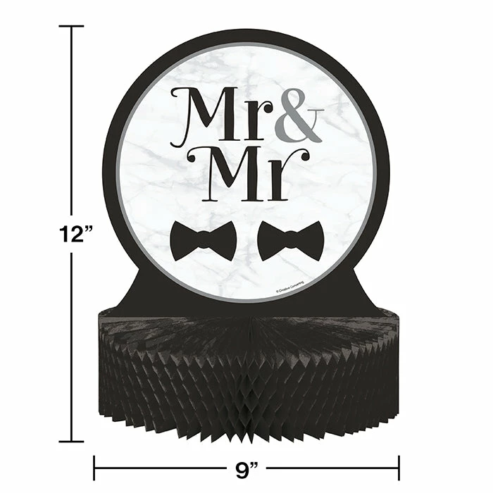 Your dinner table will look impeccable when you decorate with the Mr. and Mr. Wedding Centerpiece. These paper centerpieces measure 9″ x 12″ and feature two bowties and the words “Mr. and Mr.” with a white and black theme. Sold in packs of 6, these paper centerpieces coordinate with all Mr. And Mr. party supplies. With wholesale pricing and bulk quantities, our Mr. and Mr. Wedding Centerpieces 6 ct are perfect for event planners, caterers, and home hostesses alike.
