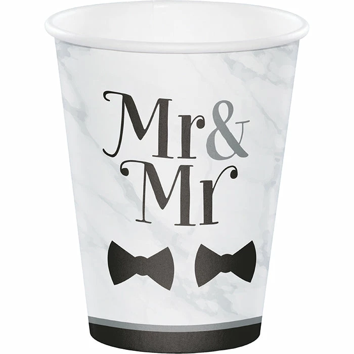 Toast to love and commitment when you serve drinks in the Mr. and Mr. Wedding Cups. These sturdy paper cups hold 12oz and feature two bowties and the words “Mr. and Mr.” with a white and black theme. Sold in packs of 96, these paper cups coordinate with all Mr. And Mr. party supplies. With wholesale pricing and bulk quantities, our Mr. and Mr. Wedding Cups 96 ct are perfect for event planners, caterers, and home hostesses alike.