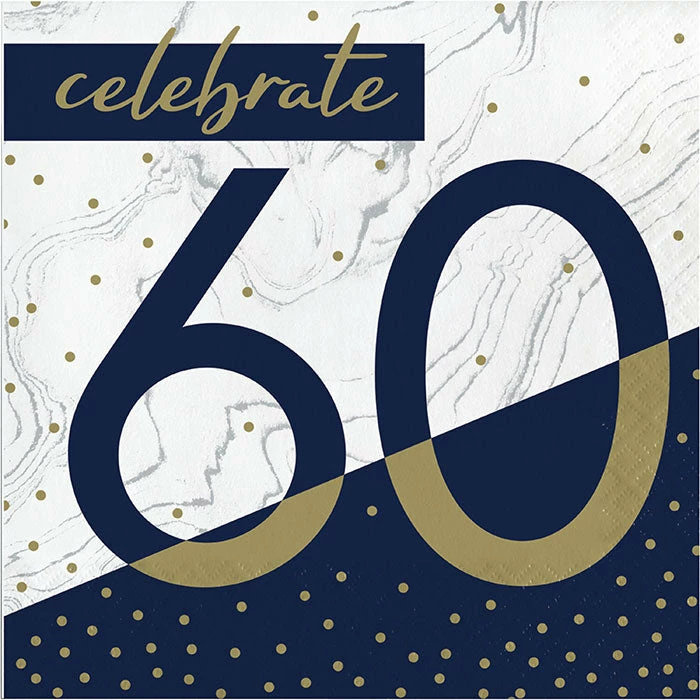 Details: Celebrate this momentous occasion when you decorate your table with the stylish Navy and Gold 60th Birthday Napkins. These 2-ply napkins measure 6.5 and feature confetti dots and the words “Celebrate 60” with a gold, navy, and white theme. Sold in packs of 16, these disposable paper napkins coordinate with all Gold and Navy party supplies. Our Navy and Gold 60th Birthday Luncheon Napkins are perfect for event planners, caterers, and home hostesses alike.