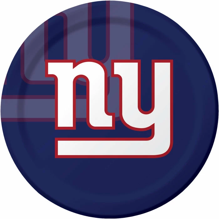 Details: Serve delicious meals on licensed NFL party supplies guaranteed to inspire team support. The New York Giants Dinner Plates are constructed of heavyweight paper board stock that is perfect for holding hot servings of burgers and sausages or concession offerings of pizza or sandwiches. The sturdy, disposable plates are decorated in royal blue and feature a large white “ny” in the center outlined in red. In the upper left the same logo is fading into the background. Retailers, businesses and event planners will score winning points with patrons and guests when the round plates are presented with other products from the theme or with solid colored tableware and accessories for a winning combination. Dinner plates measure 8.75 inches in diameter and are sold 8 per package. For this price, you get one package containing (8) New York Giants Paper Plates. Approximate Dimensions: 8.75 in x 8.75 in
