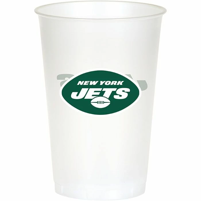 Details: Fans will get flagged for excessive celebration with our wholesale New York Jets 20 oz Plastic Cups. These disposable cups hold 20 ounces of any gameday drink and display the team logo. Sold in bulk, these disposable cups are perfect for football parties and tailgates. Stock your shelves with this year’s tailgating hot commodity, our wholesale NFL plastic cups.