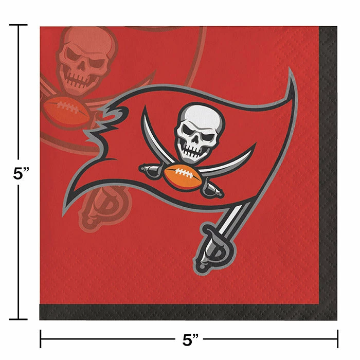 Details: You could get flagged for excessive celebration with these Tampa Bay Buccaneers Beverage Napkins. Our officially licensed NFL napkins add a touch of team pride to your football party offering. Perfect for resellers and party planners our NFL napkins will bring tailgates to the very next level. Coordinating with our Tampa Bay Buccaneers party supplies these napkins are the ultimate football party item. Approximate Size: 9.875″ x 9.875″. Material: 2-Ply Tissue
