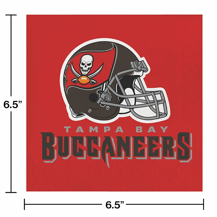 Details: Throwing a tailgate party has never been easier with these Tampa Bay Buccaneers Luncheon Napkins. Guests will be impressed with your NFL party offering complete with our entire selection of discount Tampa Bay Buccaneers party supplies. Featuring the team logo and classic colors, these luncheon napkins are the perfect addition to the wholesale collection of NFL napkins. For this price, you get one package containing (16) Tampa Bay Buccaneers Napkins. Approximate Dimensions: 6.4 in x 6.4 in