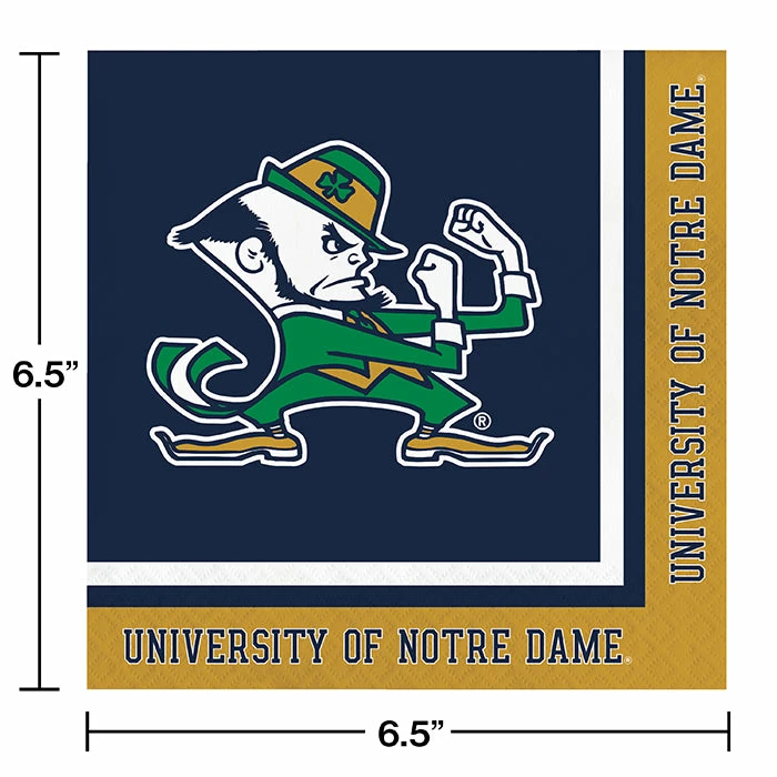Details: Delight guests at your tailgate party with these Notre Dame Fighting Irish Napkins. These paper napkins measure 6.5″ square and will show off your Irish pride as you enjoy delicious pregame meals. The party napkin is perfect for cleaning up little messes. With discount pricing, our University of Notre Dame Luncheon Napkins are perfect for event planners, caterers, and home hostesses alike. For this price, you get one package containing (20) Notre Dame Napkins. Approximate Dimensions: 6.4 in x 6.4 in