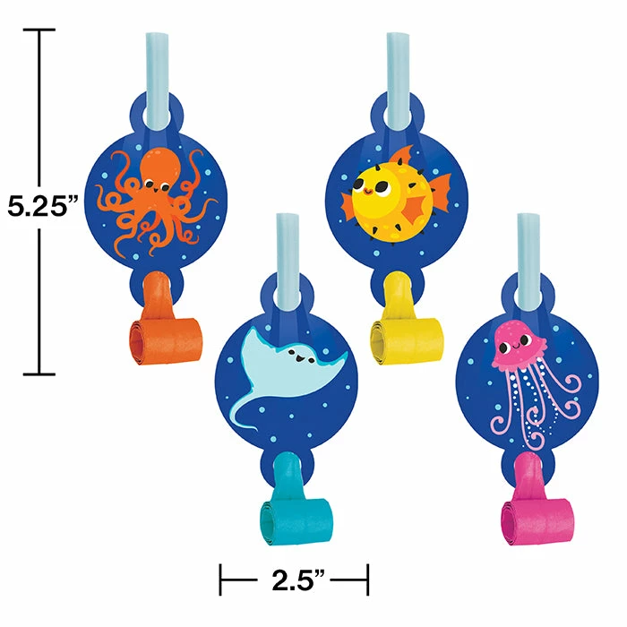 Details: Celebrate loud and proud with these Ocean Celebration Party Blowers. Featuring different sea animal designs, these blowers are the perfect way to get your guests in the party mood. Measuring 5.25″ x 2.55″ and These party blowers can be paired with any other Ocean Celebration party supplies. Our Ocean Celebration Party Blowers are perfect for event planners, caterers, and home hostesses alike.