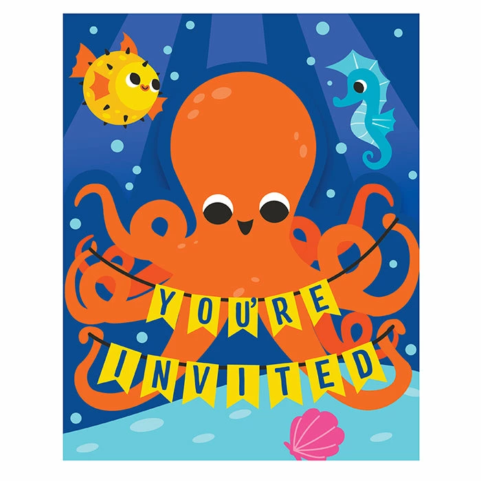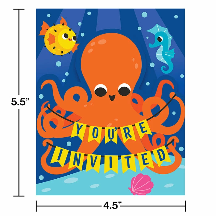 Invite your guests to the party of a lifetime with these Ocean Celebration Invitations. Featuring an adorable underwater design with the phrase “You’re Invited” centered in the middle, these invitations are the perfect way to get your guests excited for the big day. Measuring 5.5″ x 4.5″ and sold in quantities of 48, these invites can be paired with any other Ocean Celebration party supplies. With wholesale pricing and bulk quantities, our Ocean Celebration Invitations 48 ct are perfect for event planners, caterers, and home hostesses alike.