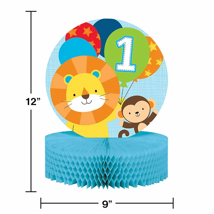 Decorate your table setting to match the special occasion by adding in the One is Fun Boy Centerpiece. This table decoration includes a blue honeycomb base with a round attachment sitting atop with cute animals with balloons. These centerpieces are an excellent addition to your little boy’s first birthday party. With wholesale pricing and bulk quantities, our One is Fun Boy Centerpiece 6 ct are perfect for event planners, caterers, and home hostesses alike.