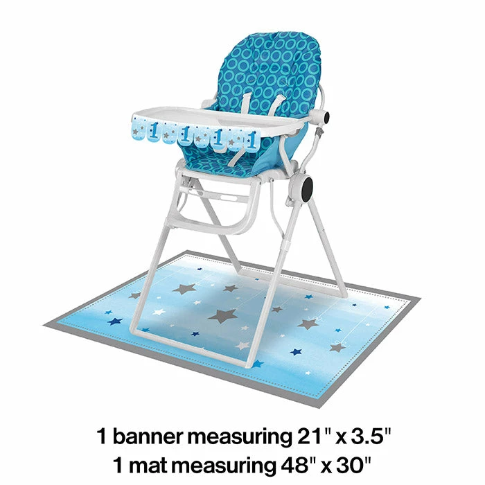 Details: Present your little one with his birthday throne with the One Little Star Boy High Chair Kit. The kit includes a banner and mat to celebrate his 1st birthday. These high chair kits come in packages of 1 and coordinate wonderfully with other One Little Star Boy party supplies and accessories. With discount pricing, our One Little Star Boy High Chair Kit are perfect for event planners, caterers, and home hostesses alike. You get one One Little Star Boy High Chair Kit for this price.