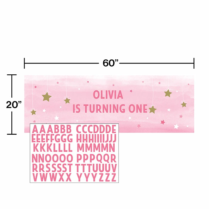 Details: There is no better way to prep the party scene for a 1st birthday celebration than with the One Little Star Girl Party Banner. The huge banner includes pink alphabet stickers to create customized messages on the banner! These party enhancers can be combined with other One Little Star Girl party supplies. With discount pricing, our One Little Star Girl Party Banner are perfect for event planners, caterers, and home hostesses alike. You get one One Little Star – Girl Giant Party Banner W/Stck for this price. Approximate Dimensions: 60 in x 20 in