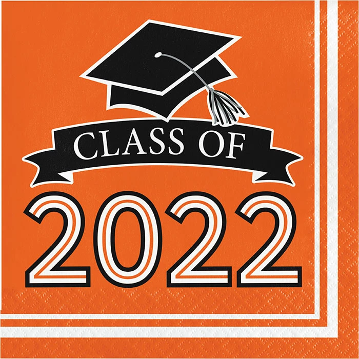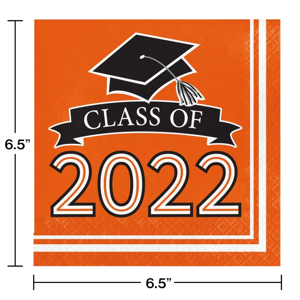 Details: Add some flair to your graduation party with these Class of 2022 Orange Napkins. Featuring a vibrant orange background with “Class of 2022″ centered in the middle, these napkins will accent all your tables perfectly. Measuring 6.5” and sold in packs of 36, these napkins can be paired with any other graduation supplies. Our Class of 2022 Orange Luncheon Napkins are perfect for event planners, caterers, and home hostesses alike.