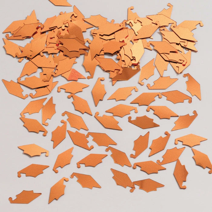 Details: Scatter the party tables with the Orange Mortarboard Graduation Confetti. This 0.5 oz. pack of confetti contains small cutouts that are shaped in the form of a graduation cap. The table scatter is a great party enhancement for your graduation celebration. With discount pricing, our Orange Mortarboard Graduation Confetti are perfect for event planners, caterers, and home hostesses alike. You get one Orange Mortarboard Graduation Confetti, 0.5 oz for this price.