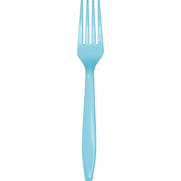 Details: Party planners and guests alike will find our wholesale Pastel Blue Plastic Forks an excellent choice of durable, disposable silverware to meet their partyware needs. Constructed from premium plastic, these heavy duty plastic forks will last through an entire meal service. Our light blue forks look especially beautiful when combined with our matching pastel blue cutlery or darker blue plastic silverware. Sturdy and stylish, our wholesale disposable cutlery is competitively priced to offer significant savings to wholesale buyers. For this price, you get one package containing (24) Pastel Blue Plastic Forks. Approximate Dimensions: 7 in