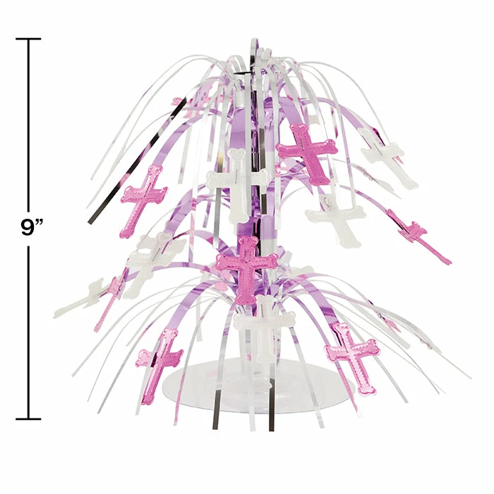 Place the Pink & Silver Cross Centerpiece in the middle of your table at the big get-together. The foil cascade centerpiece measures 8.5″? tall and includes silver strands shooting out with attachments of pink crosses. The table decoration is perfect for your religious celebration. With wholesale pricing and bulk quantities, our Pink & Silver Cross Centerpiece 12 ct are perfect for event planners, caterers, and home hostesses alike.