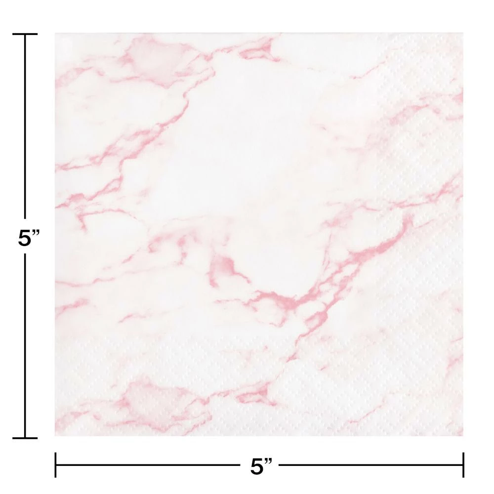 Details: Use the Pink Marble Beverage Napkins when you celebrate your next event. These 2-ply cocktail napkins measure 5″ and feature a pink marble design with a pink and white theme. Sold in packs of 16, these disposable paper napkins coordinate with all Pink Marble party supplies. Save more on party decorations, party favors and party supplies at PartyDecorations.com!. Material: Tissue. Approximate Size/Dimensions (inches): 5 x 5.