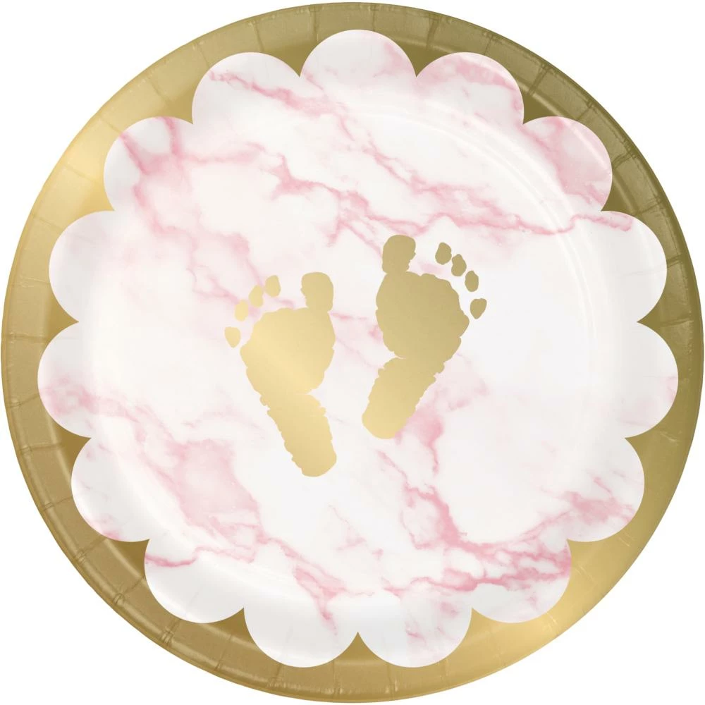 - 8 Pink Marble Baby Shower Footprints Dessert Plates
