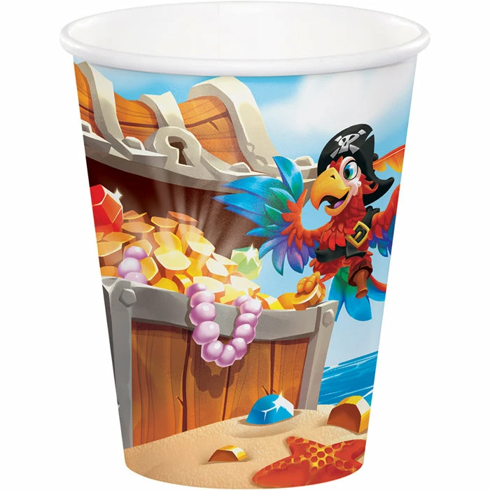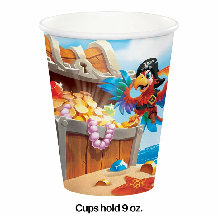 Details: Serve a hot or cold beverage in these Treasure Island Pirate Cups. Featuring a treasure chest overflowing with gold and jewels these cups are the perfect addition to your celebration. Holding 9 oz these cups can be paired with any other Treasure Island Pirate birthday party supplies. With discount pricing and great quality our Treasure Island Pirate Cups are perfect for event planners caterers and home hostesses alike. Approximate Size: 9 oz. Material: Heavyweight Paperboard