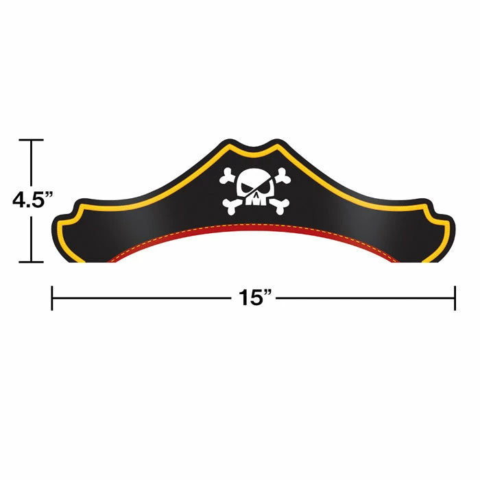 Details: Transform your guests into real life pirates with these Treasure Island Pirate Party Hats. Displaying a black pirate hat design these hats are the perfect addition to your celebration. Measuring 15″ x 4.5″ these party hats pair perfectly with any other Treasure Island Pirate birthday party supplies. With discount pricing and great quality our Treasure Island Pirate Party Hats are perfect for event planners caterers and home hostesses alike. Approximate Size: 15″ x 4.5″. Material: Paper