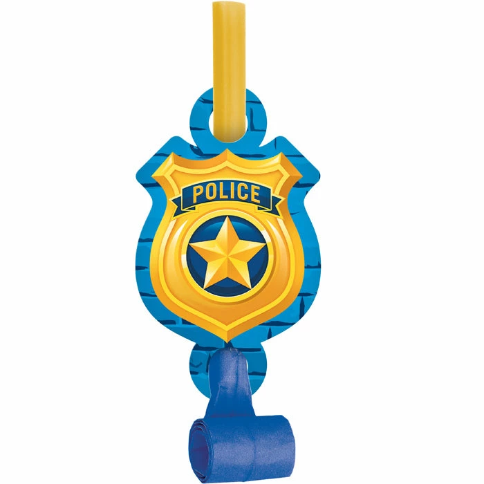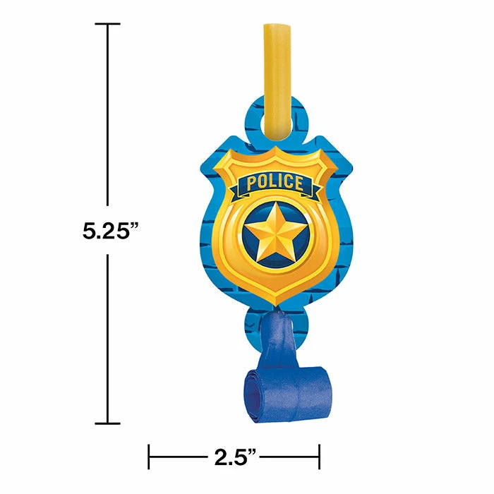 Details: Add some flair to your party with the Police Party Blowouts. Featuring a police badge cutout, each of these party blowers is a sure bet to add a little more noise to the get-together! These party enhancers coordinate with our other police theme party supplies! With discount pricing, our Police Party Blowers are perfect for event planners, caterers, and home hostesses alike. For this price, you get one package containing (8) Police Party Blowouts W/ Medallions Approximate Dimensions: 5.25 in x 2.55 in