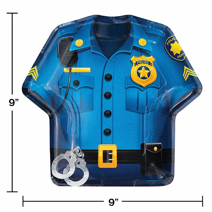 Details: Complete your police theme with these Police Party Uniform Paper Plates. Clad in a police uniform, these paper plates are a must-have addition to your birthday party supplies. These tableware items are ideal for police parties and celebrations. With discount pricing, our Police Party Uniform Dinner Plates are perfect for event planners, caterers, and home hostesses alike. For this price, you get one package containing (8) Police Party Uniform Paper Plates. Approximate Dimensions: 9.75 in x 9.25 in