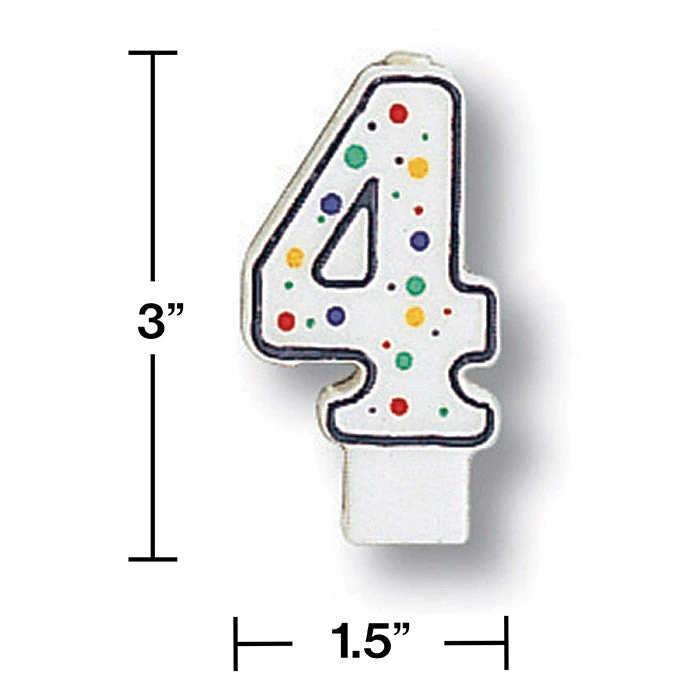 Details: Makes your sweets even sweeter with the Polka Dot #4 Candles. These vibrant cake decorations are shaped like the number 4 and feature festive polka dots. This candle decoration coordinates with other polka dot party supplies. With discount pricing, our Polka Dot #4 Candles are perfect for event planners, caterers, and home hostesses alike. You get one Polka Dot #4 Candle for this price. Approximate Dimensions: 1.5 in x 2.875 in