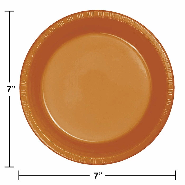 Details: Make sure your guests can sneak all the desserts they want at your next party using these Pumpkin Spice Orange Premium Plastic Dessert Plates! Made with premium plastic these cake plates are able to hold more weight and provide a more sturdy foundation. The cake plates measure 7″ and can be paired with any of our other Pumpkin Spice Orange party supplies. With discount pricing and great quality our Pumpkin Spice Orange Premium Plastic Dessert Plates are perfect for event planners caterers and home hostesses alike. Approximate Size: 7″. Material: # 6 Recyclable Plastic