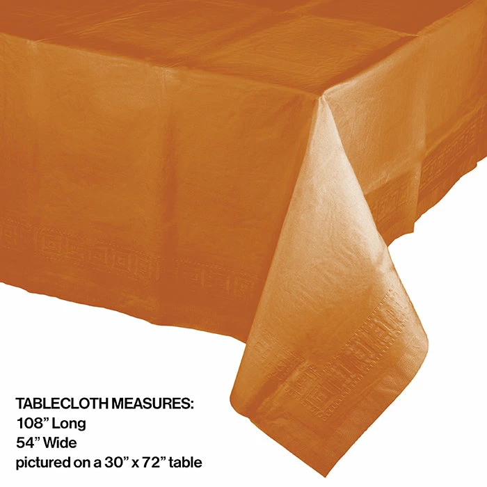 Details: This Pumpkin Spice Orange Table Cover will provide an eye-catching setting at your upcoming event. The lined table decoration measures 54″ x 108″ and is paper so clean up is a breeze. This crisp table cover will keep permanent stains away and can be matched with other theme party supplies and decorations. With discount pricing and great quality our Pumpkin Spice Orange Paper table cover are perfect for event planners caterers and home hostesses alike. Approximate Size: 54″ x 108″. Material: 2 Ply Tissue with Poly Lining