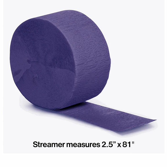 Details: One of the simplest and most economical ways to bump up party decorations is with simple crepe paper streamers. Our Purple 81 Foot Crepe Streamers are 1.75 inches wide and can be hung from doorways, ceilings, banisters, fence rails and table edges to create an eye catching and festive party scene. Coordinate with other streamers in complementary colors that match tableware for birthdays, showers, receptions, and more. The Purple 81 Foot Crepe Streamer is packaged individually. You get one Purple Crepe Streamers 81′ for this price. Approximate Dimensions: 81 ft x 1.75 in