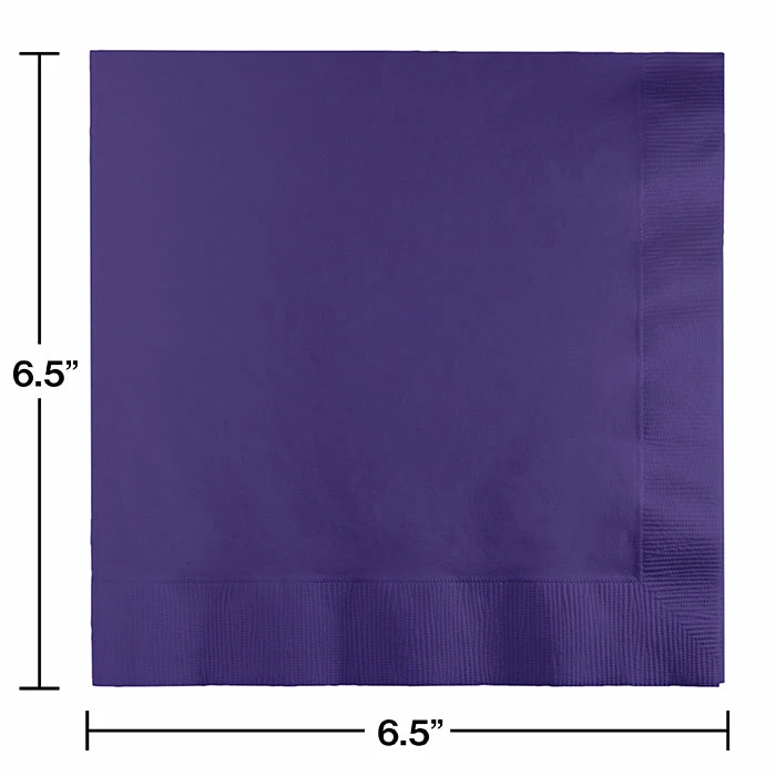 Details: The Purple Lunch Napkins can be perfectly paired with patterned or complementary solid tableware and decoration to create a festive setting for themed celebrations, birthday celebrations, or any special event. This bold 2-ply purple napkin adds a festive touch of color and is sure to be a favorite with event planners, caterers, and budget friendly hostesses. Paper napkins are packaged to include 50 each making them ideal for larger celebrations. Purple lunch napkins measure 6.375 inches x 6.375 inches folded, and are sold in a quantity of For this price, you get one package containing (50) Purple Luncheon Napkin 2Ply. Approximate Dimensions: 6.4 in x 6.4 in