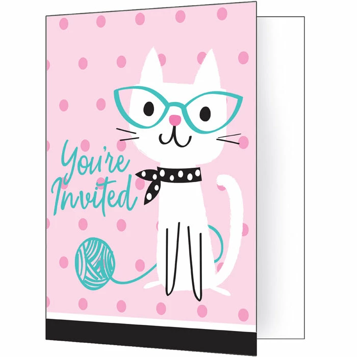 Use this Purr-Fect Party Invitation Foldover (Case Pack of 48) item and our other Purr-fect Party, Birthday Party Tableware products to throw a great party. You get 8 per package and 6 packages per case. Total case count is 48. Shop and save at PartyDecorations.com! Size: 4″ x 5″. Material: Paper