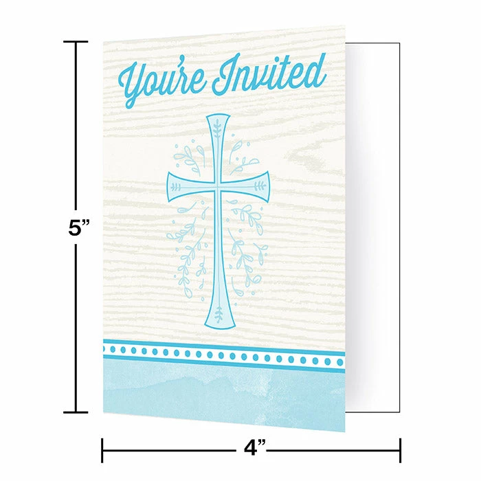 Divinity Blue Foldover Invitations (48/Case) – You get 8 per package and 6 packages in each case for a total count of 48/case! Shop and save on on more Divinity Blue Religious Theme at PartyDecorations.com!