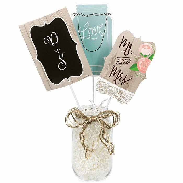 The trendy Rustic Wedding Centerpiece Sticks have so many uses and they let you add a personal touch to weddings and bridal showers to celebrate the new couple. These charming centerpiece sticks measure 15 inches by four inches and feature three different designs. These party decorations can be inserted in mason jars for a beautiful touch at your party tables. With wholesale pricing and bulk quantities, our Rustic Wedding DIY Centerpieces Sticks 18 ct are perfect for event planners, caterers, and home hostesses alike.